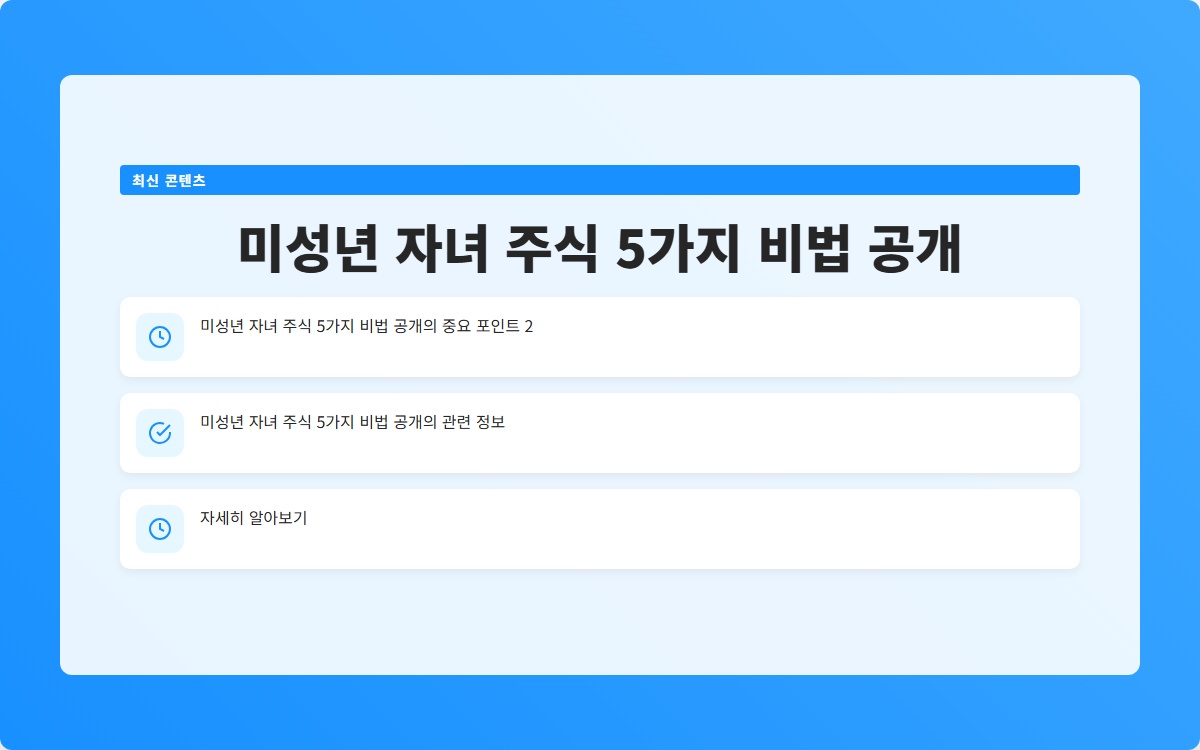 미성년 자녀에게 주식 투자는 단순한 증여를 넘어 미래를 위한 중요한 준비입니다. 지금 바로 시작해 보세요! 올바른 정보와 방법을 통해 자녀의 경제적 독립을 지원할 수 있습니다.