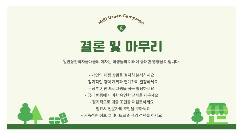 결국, 일반상환학자금대출의 이자 비교는 단순한 수치 이상의 의미를 갖습니다. 이는 학생들의 미래와 재정적 안정성에 깊은 영향을 미치기 때문입니다. 학생들은 다양한 옵션들 가운데 자신에게 가장 적합한 상품을 선택할 필요가 있으며, 이를 통해 경제적인 부담을 최소화하는 것이 중요합니다.