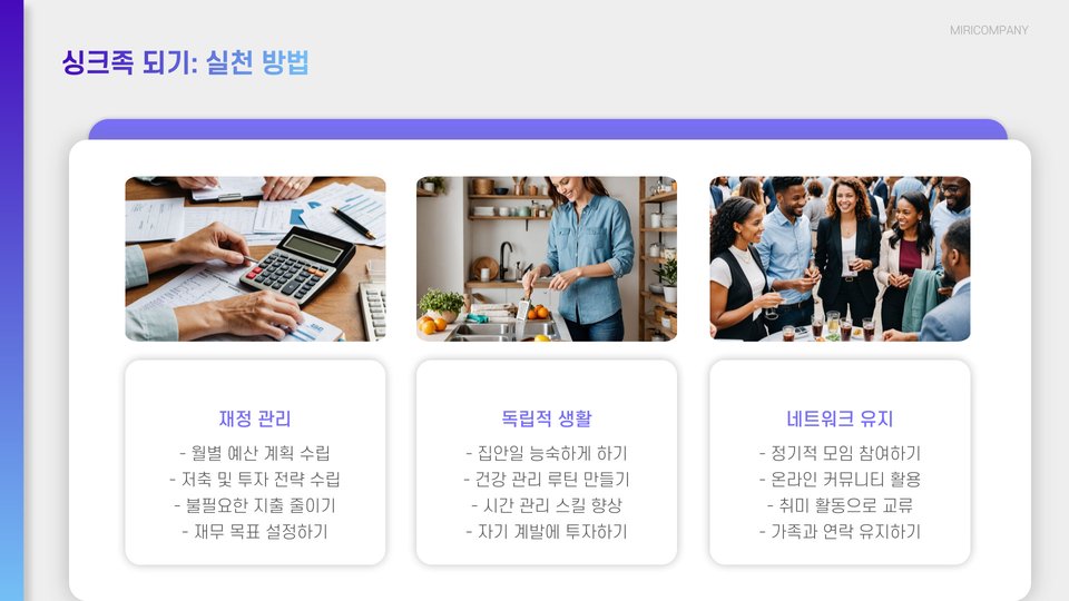 최신 트렌드 속에서 싱크족은 점점 더 많은 사람들에게 매력적으로 다가오고 있습니다. 자신의 취미나 관심사를 바탕으로 커뮤니티에 가입하고, 다양한 사람들과 소통하는 것은 매우 의미 있는 경험이 될 수 있습니다. 이 글을 통해 싱크족의 정의와 가입 방법, 최신 트렌드에 대해 이해하는 데 도움이 되었기를 바랍니다. 여러분도 자신만의 싱크족을 찾아보세요!